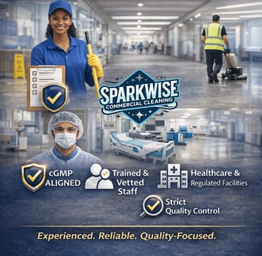 At SparkWise Commercial Cleaning, we deliver reliable janitorial services backed by experience, professionalism, and strong quality standards. Our cleaning practices align with recognized industry guidelines, including CIMS-aligned methodologies and cGMP-support cleaning practices, helping facilities maintain clean and well-managed environments.